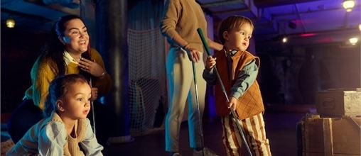 Alle interaktiven Minigolfbahnen befinden sich im Innenbereich; das Wetter spielt also keine Rolle.