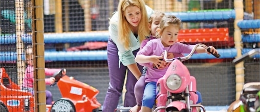 Radeln durch die Wälder ist gut für die Kinder, aber ab und zu ein paar Runden auf der Rennstrecke in dem Baluba crossen ist auch keine schlechte Idee. Die elektrischen Autos stehen schon bereit. Einsteigen und Gas geben!