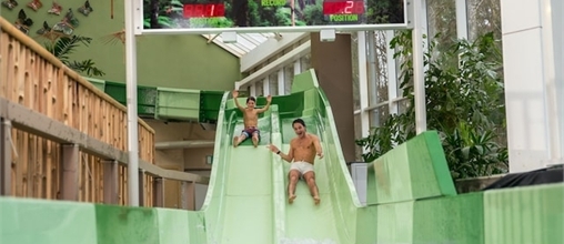 Fertig? Los! Im Aqua Mundo können Sie gegeneinander antreten - auf einer Rutsche, bei der zwei Rutschbahnen genau nebeneinander liegen. Sind Sie sich nach der Ankunft im großen Wasserschwall nicht mehr sicher, wer gewonnen hat? Kein Problem - am Ende der Rutschbahn hängt eine Uhr, die das Ergebnis ganz genau anzeigt.