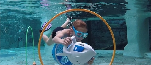 Lassen Sie sich von einem Unterwasser-Scooter durch die Wellen ziehen! Sausen Sie ganz nach Lust und Laune hin und her durch den Unterwasser-Parcours!