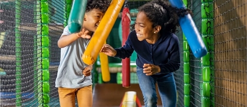 Die Indoor-Spielwelt BALUBA ist voll von Kletterwänden, Rutschbahnen, Trampolinen, Bauklötzen, Schaumkanonen und anderem was Kinder stundenlang begeistert und müde toben lässt. Alles ist sicher und ungefährlich, sodass Sie als Eltern ganz entspannt von der Terrasse aus zusehen können.