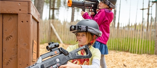 Kämpfe mit einem mit Sensoren ausgestatteten Helm und einer Laserpistole im Team, um die meisten Punkte zu erzielen! Die Strategie? Zeige Kooperation und Zusammenhalt, um so viele Gegner wie möglich ins Visier zu nehmen und es dabei zu vermeiden, selbst getroffen zu werden.