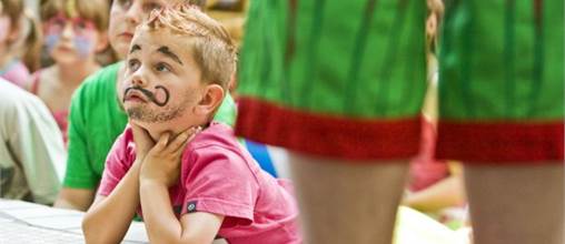 Voller Spannung warten die Kinder, bis der Vorhang des Kasperletheaters sich öffnet. Und dann beginnt die Geschichte. Die Kinder sind voller Begeisterung dabei und machen lauthals mit.